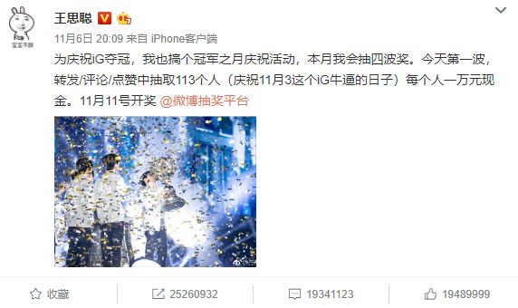 他被iG战队称为“校长”,本次夺冠冠军IG独揽581万,还有王思聪许诺每人奖励100万,以及微博转发微博中奖1万元,已引起2526万人转发,但至今未公布中奖情况,这场营销做的很有王健林儿子的商业头脑。